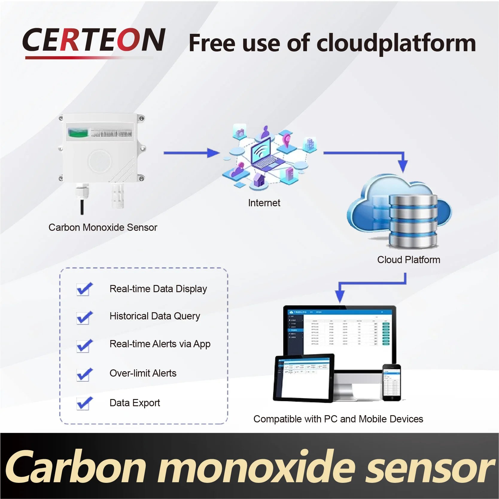 Wall-mounted Carbon Monoxide Sensor CO Gas Detector Transmitter RS485 4-20mA Output Industrial CO Monitor