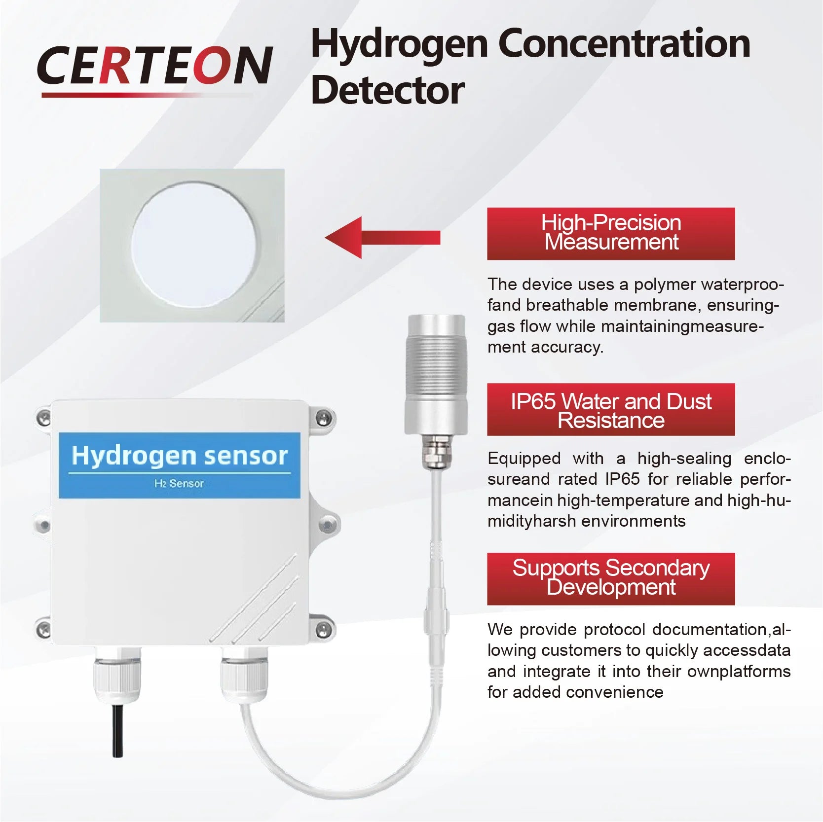 Wall Mounted H2 Sensor Hydrogen Gas Detector RS485 Transmitter with Temperature Humidity Monitor for Industrial Safety Alarm