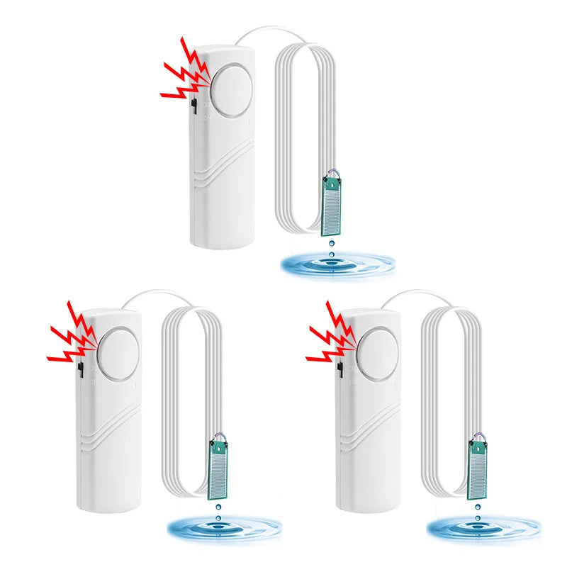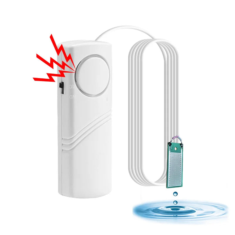 Water Leak Detector Instant 90dB Alarm Flood Sensor 1M Cable Audio Alert Battery Powered for Pipe / Floor / Kitchen / Bathroom