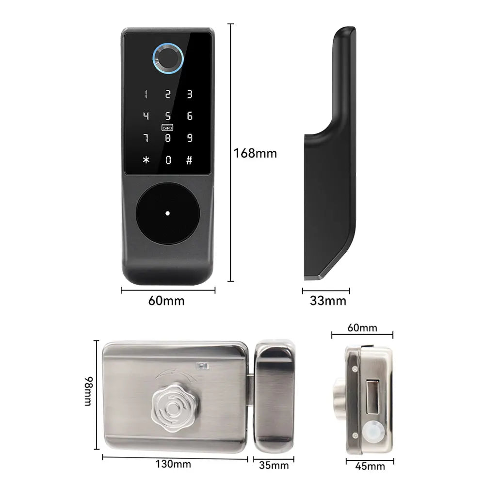 Waterproof Tuya Smart Double Side Fingerprint Lock Keyless Entry Motor Rim Door Lock 2.4G Wifi Remote Control with Alexa Echo